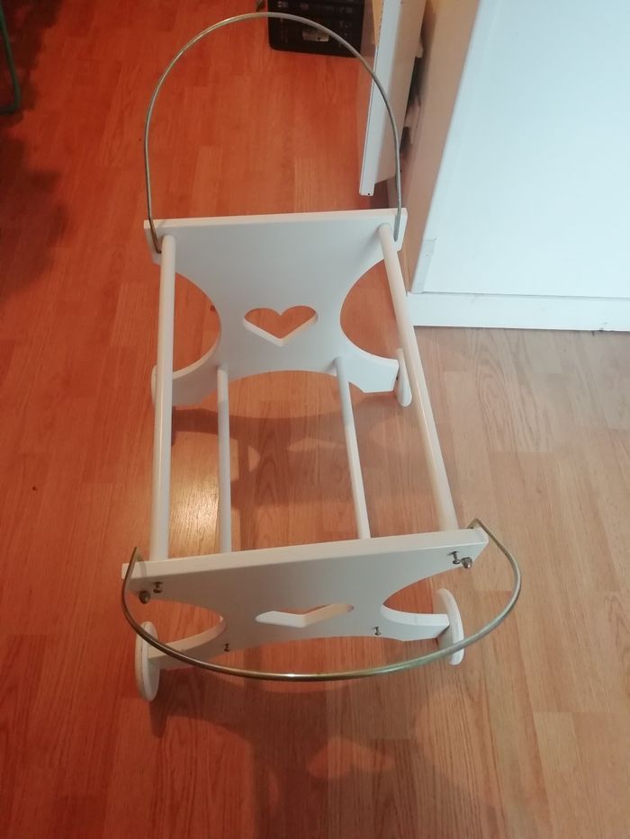 A vendre couffin bébé en rotin blanc avec ses pieds.