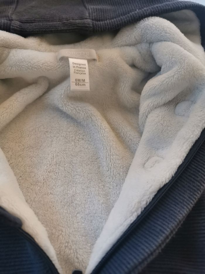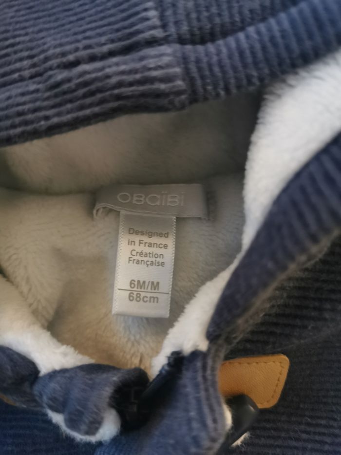 Veste doudoune obaibi 6 mois très bon état couleur bleu violine