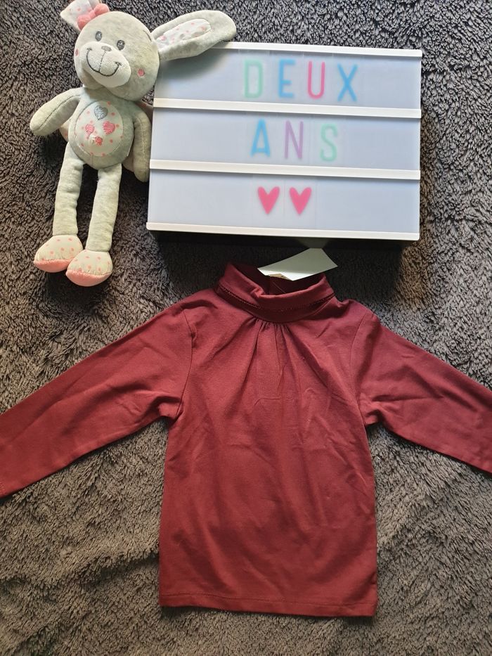 Un indispensable le sous pull uni Liseré brillant au col Couleur prune #fille2anstattoogirl_3 #fille2ans #colroule2ansfille