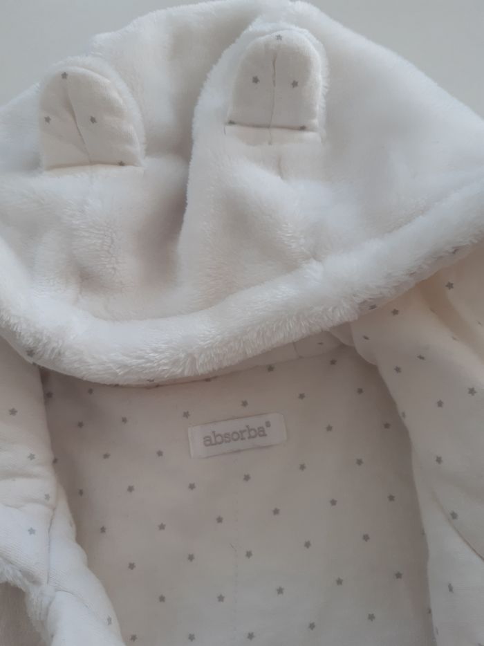 Manteau blanc tout doux Absorba, taille 6 mois. Très bon état