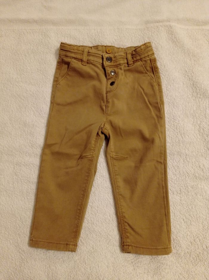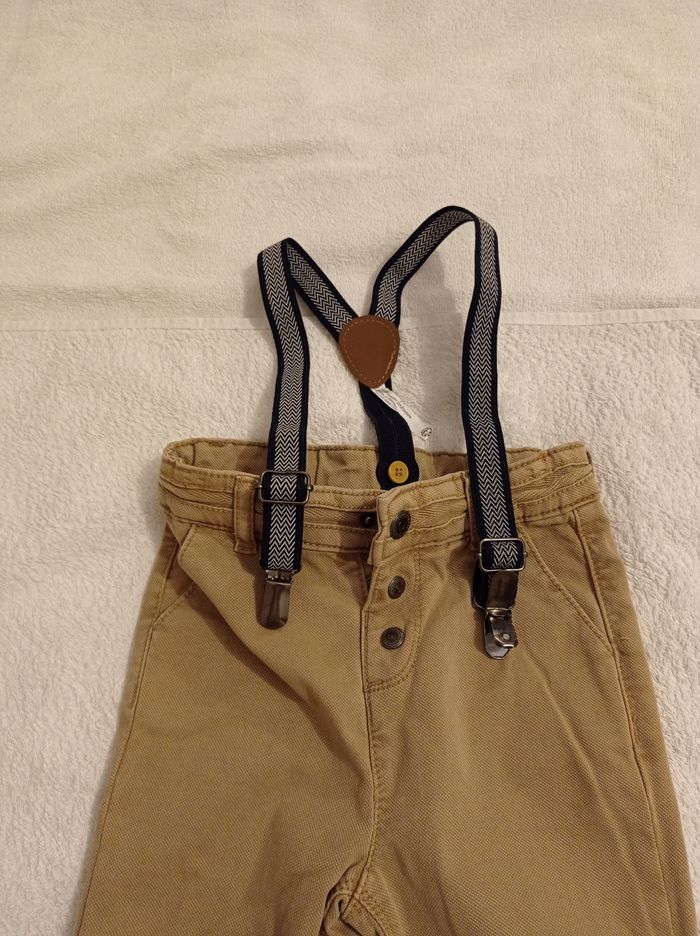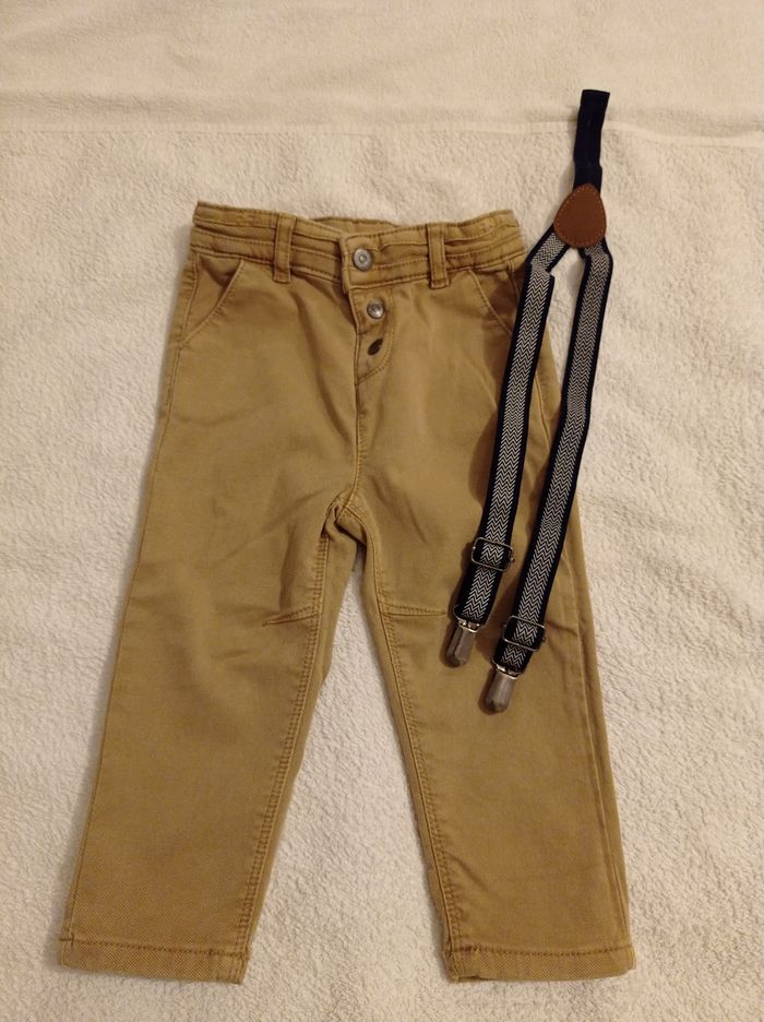 Pantalon de petit garçon avec bretelles ou sans bretelle élastique à la taille réglage de poche en toile marron clair marque tape à l'oeil taille 23 - 86 cm - photo numéro 1