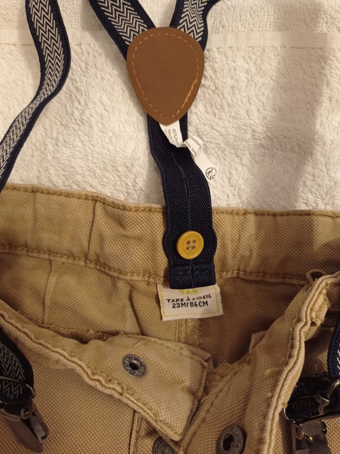 Pantalon de petit garçon avec bretelles ou sans bretelle élastique à la taille réglage de poche en toile marron clair marque tape à l'oeil taille 23 - 86 cm - photo numéro 8