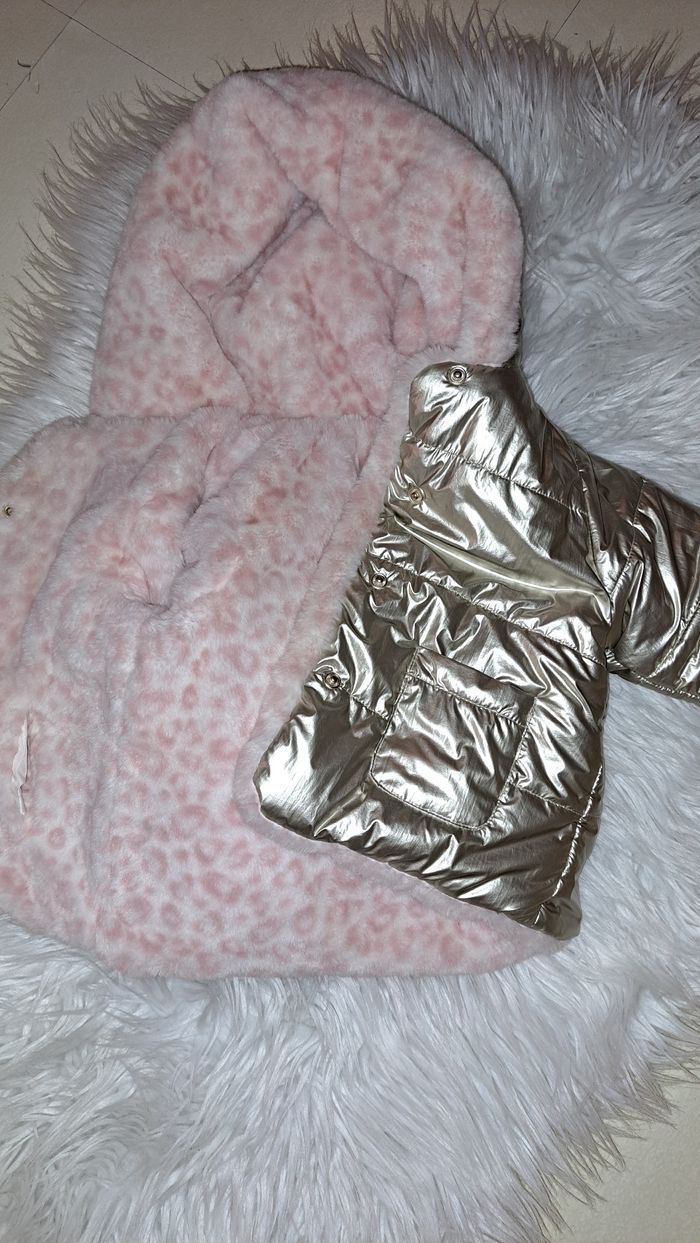 Doudoune à capuche réversible . - Manches longues - 2 poches sur le devant - 1 côté effet brillant - 1 côté en fausse fourrure imprimé panthère