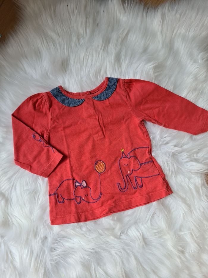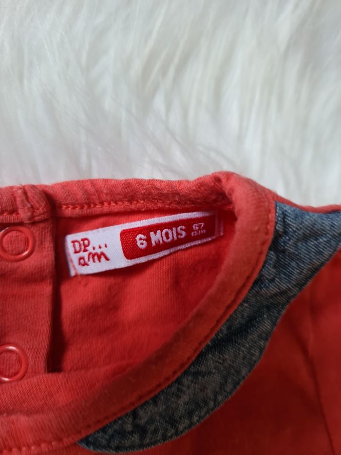 Haut rouge avec 2 éléphants Dpam 6mois