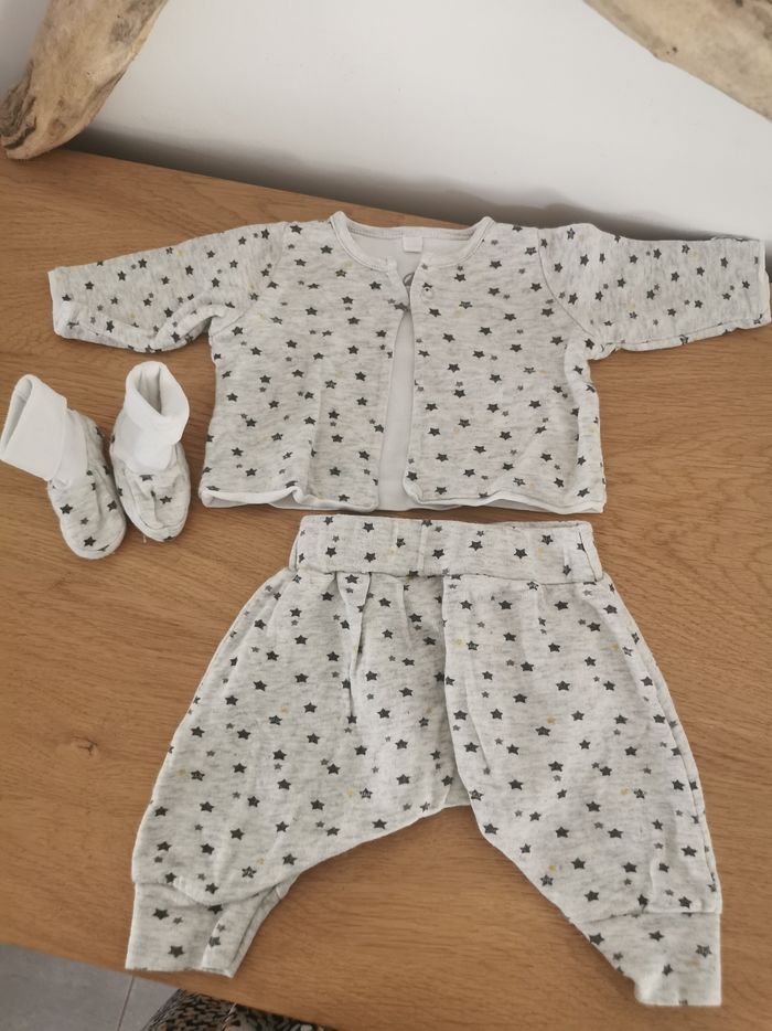 Ensemble bébé mixte petit bateau 1 mois avec ses chaussons et son bodie assorti plus une blouse boutchou