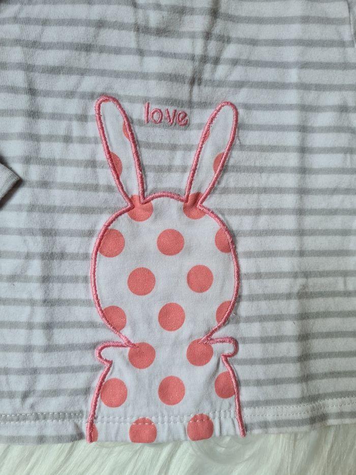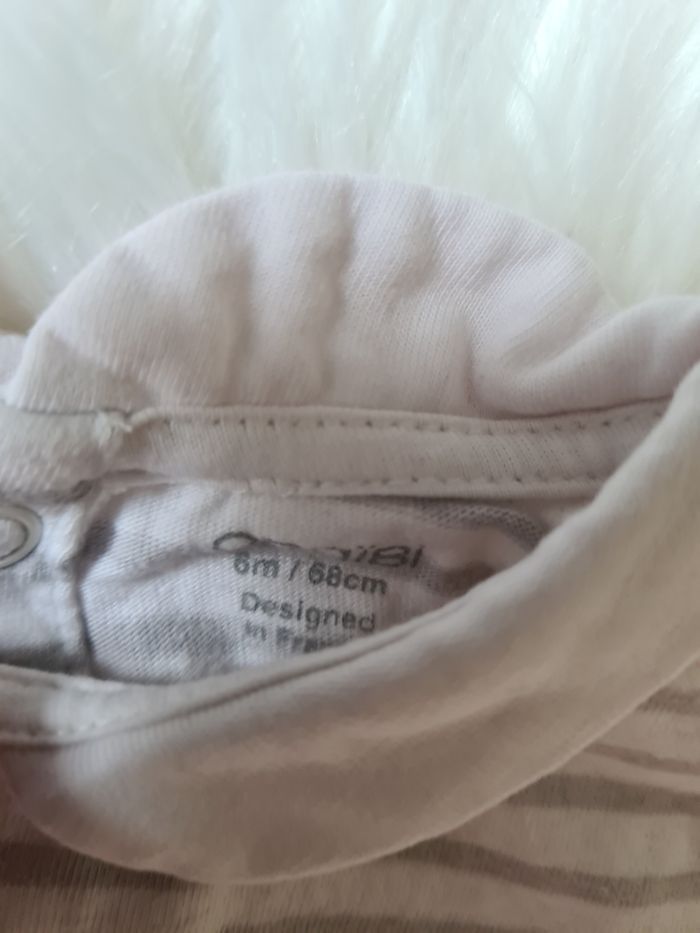 Haut rayé gris et blanc Avec lapin Obaibi 6mois