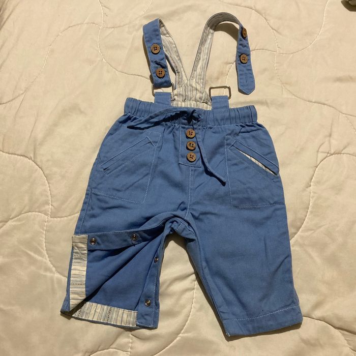 Jolie salopette DPAM bleue Taille 1 mois Pressions à l’entrejambe 2 niveaux d’ajustement des bretelles. Taille ajustable par le lien (Boîte 2)