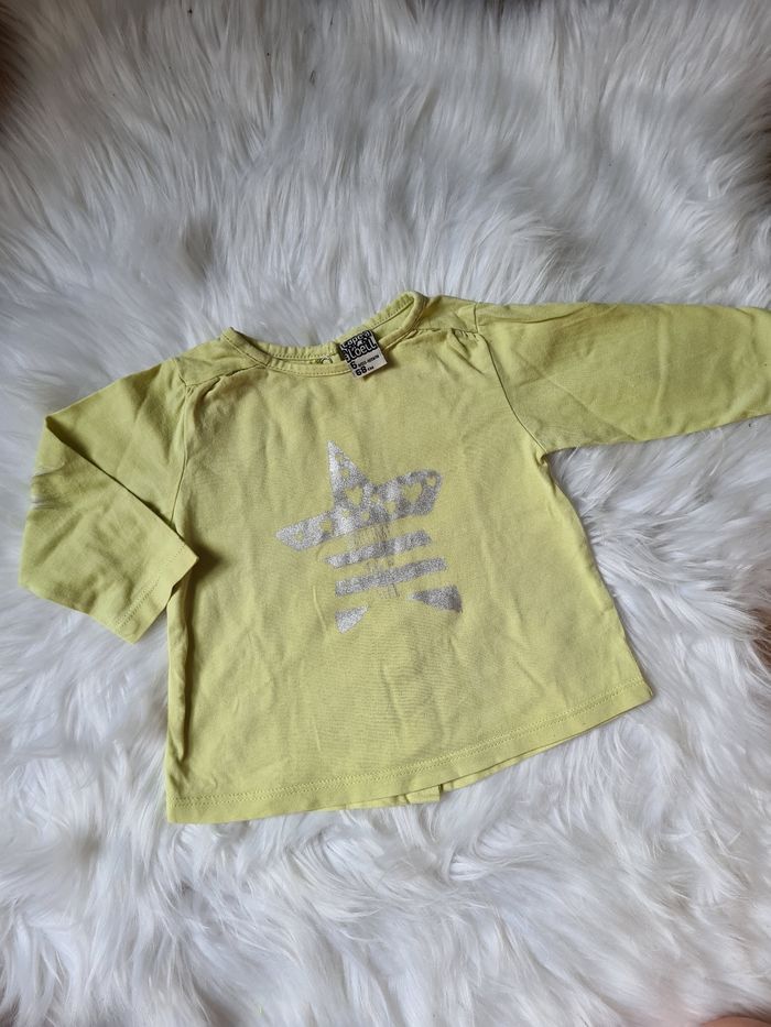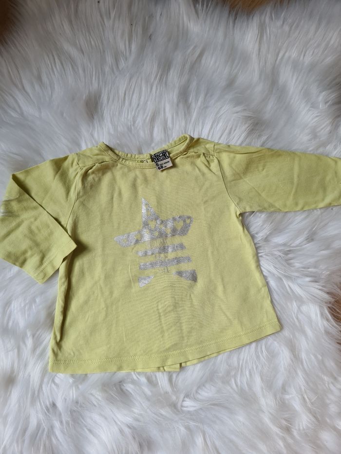 Tee-shirt manches longues vert/jaune avec étoile argentée Tape à l'œil 6mois