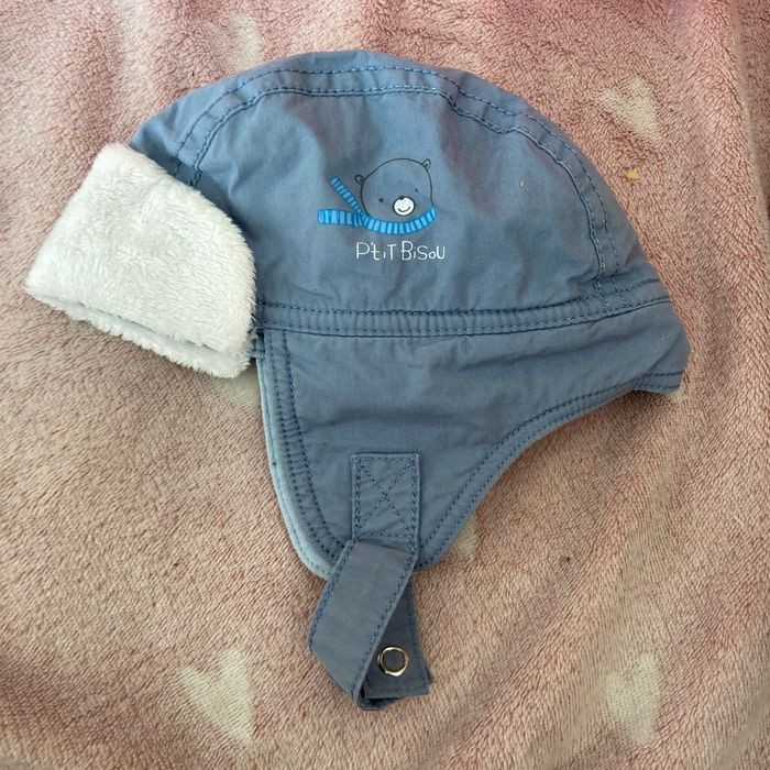 A vendre petit bonnet en taille 1/3 mois (p’tit bisous) style petit shapka 100% en Cotton