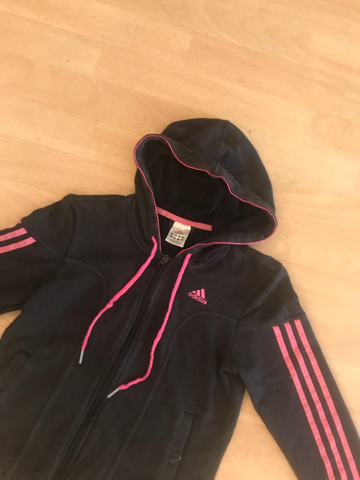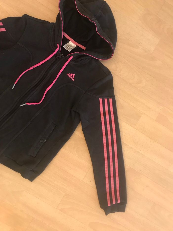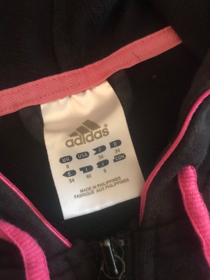 Gilet fille taille 36 Correspond à 14/16 ans Adidas Couleur noir et rose 60 % coton 40 % polyester Bon état (Mag)