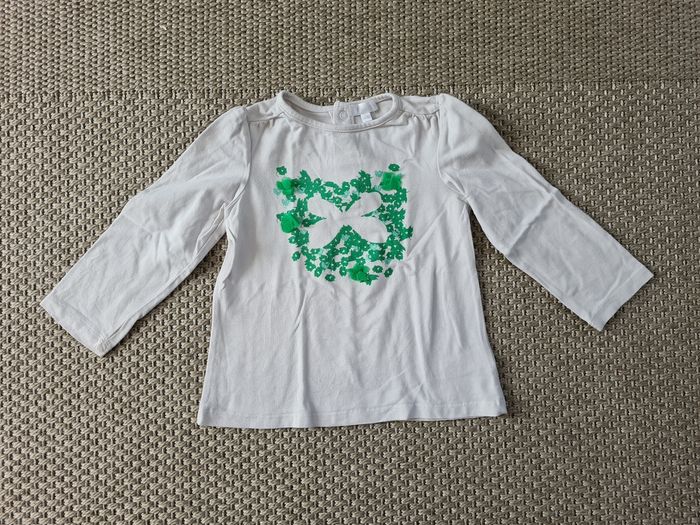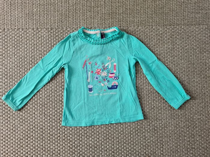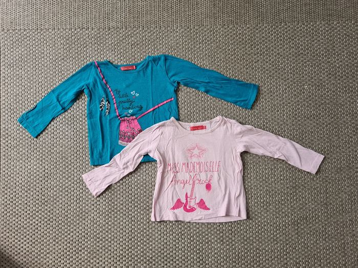 Lot de 12 t-shirts manches longues en bon état certains en très bon état. Plusieurs marques : In extenso, tissaia, sergent major, complices, carter's, kiabi, tex ... Défauts : tâches sur le t-shirt rayé Petit trou au dos du tshirt bleu avec motif plumes (Photos supplémentaires sur demande.