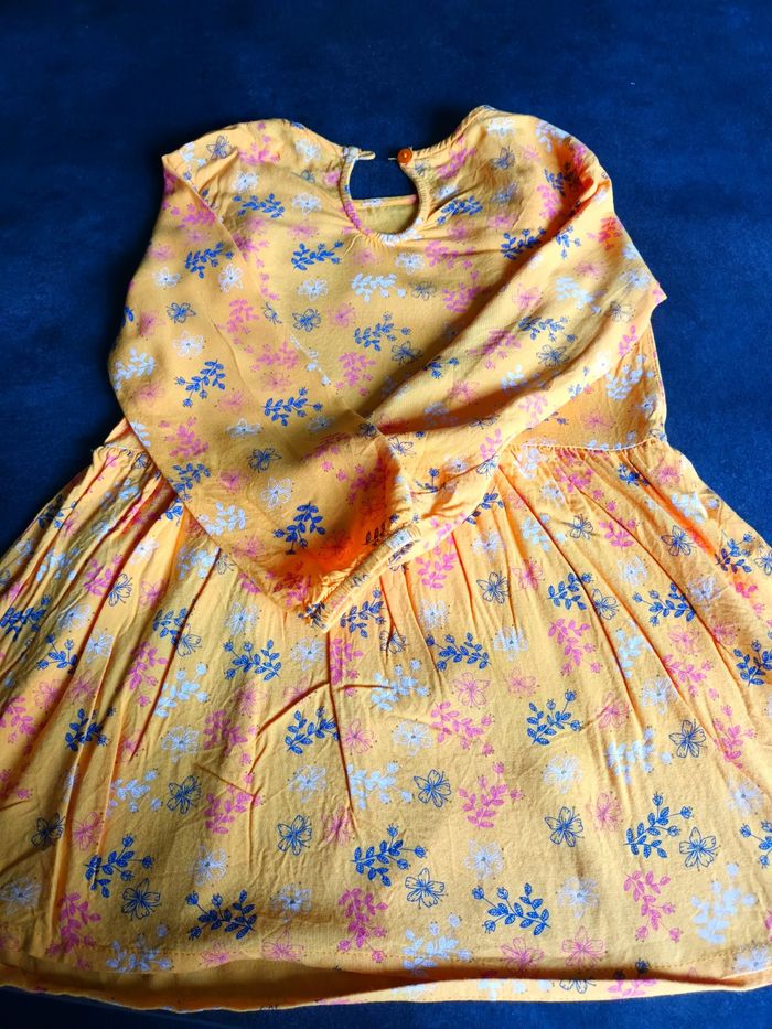 Jolie robe longue jaune fleuris de la marque Tissaia avec bouton au cou à l'arrière