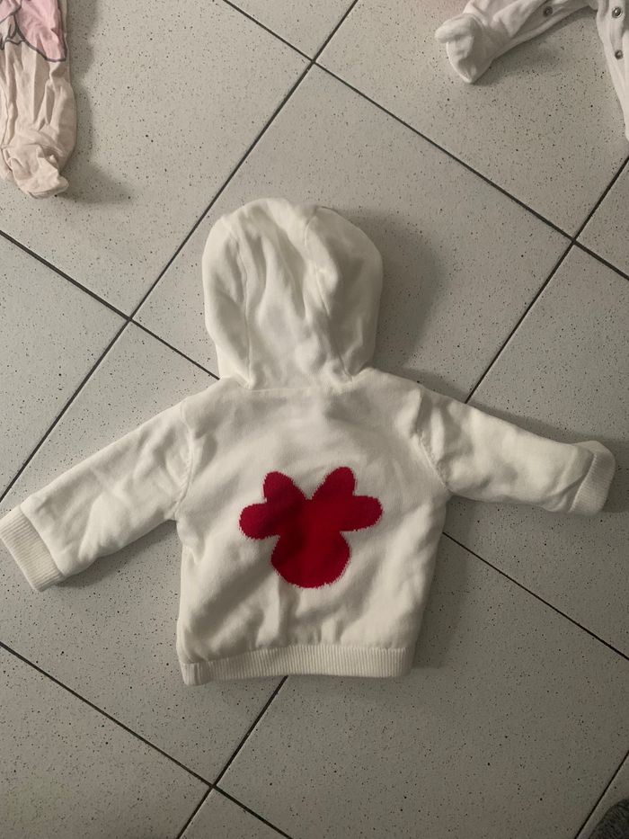 Veste en sherpa minnie mise juste à la sortie de la maternité