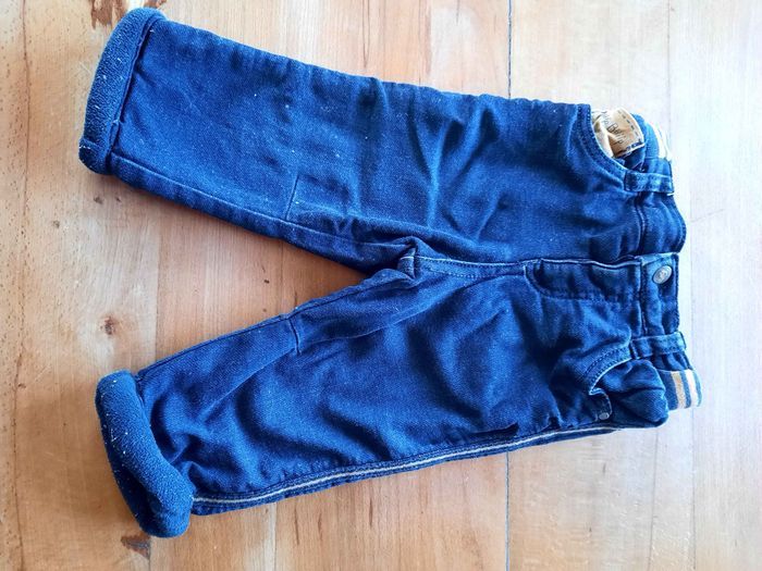 Pantalon Orchestra en très bon état porté 1 fois. Taille 12 mois/74 cm. Entièrement doublé polaire. Matière 86% coton, 12% polyester, 2% élasthanne. Doublure 100% polyester.