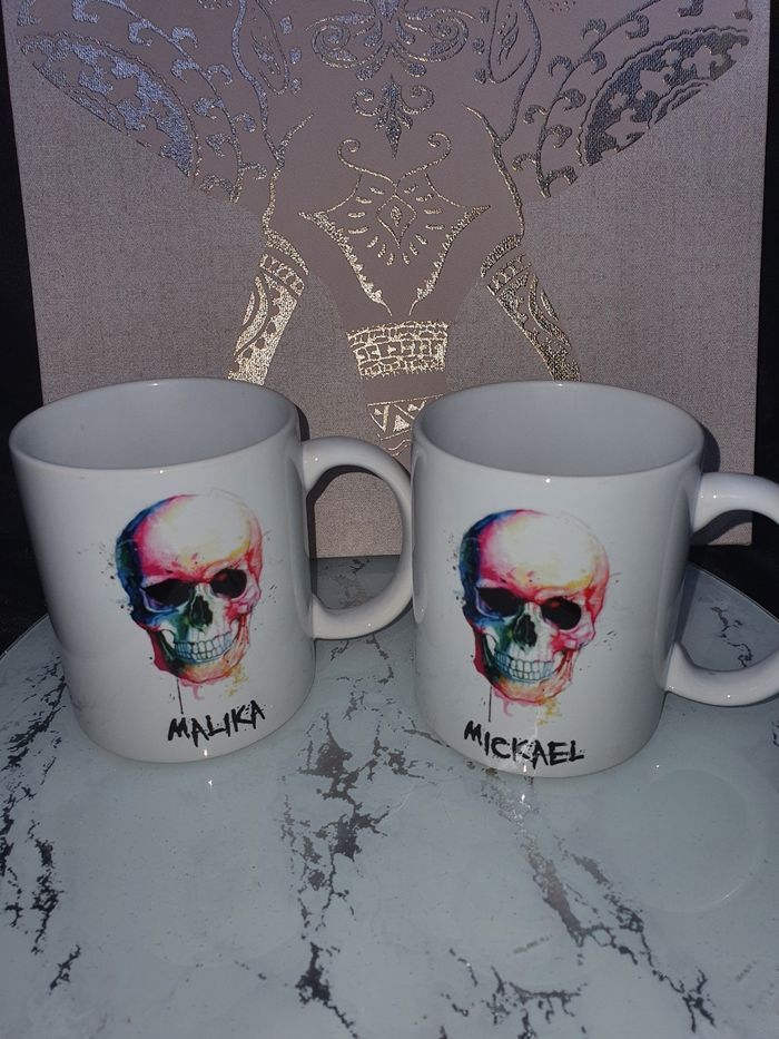 Mug tête de mort aquarelle au prénom de vôtre choix. Vendu à l'unité