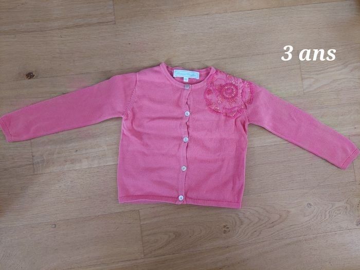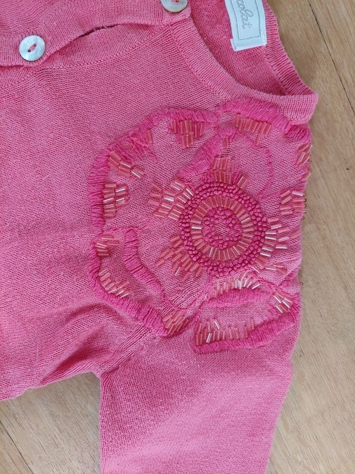 Cardigan Détails épaules brodé perles motif fleur Tbe 3 ans