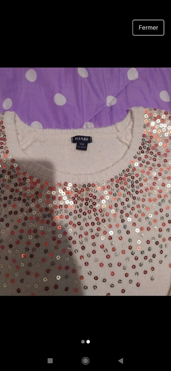 Jolie pull doux, un peu bouloches mais si vous avez la machine anti bouloches le pull sera en excellent état. Taille 12 ans