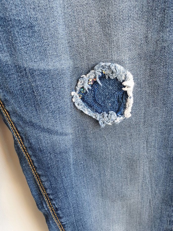 99% coton 1% elastane Patchwork ajouté pantalon non troué Garniture aux poches clous de différentes formes