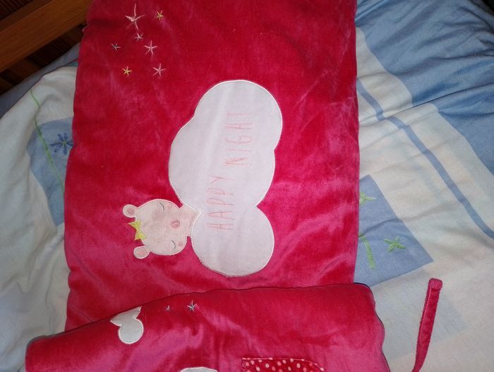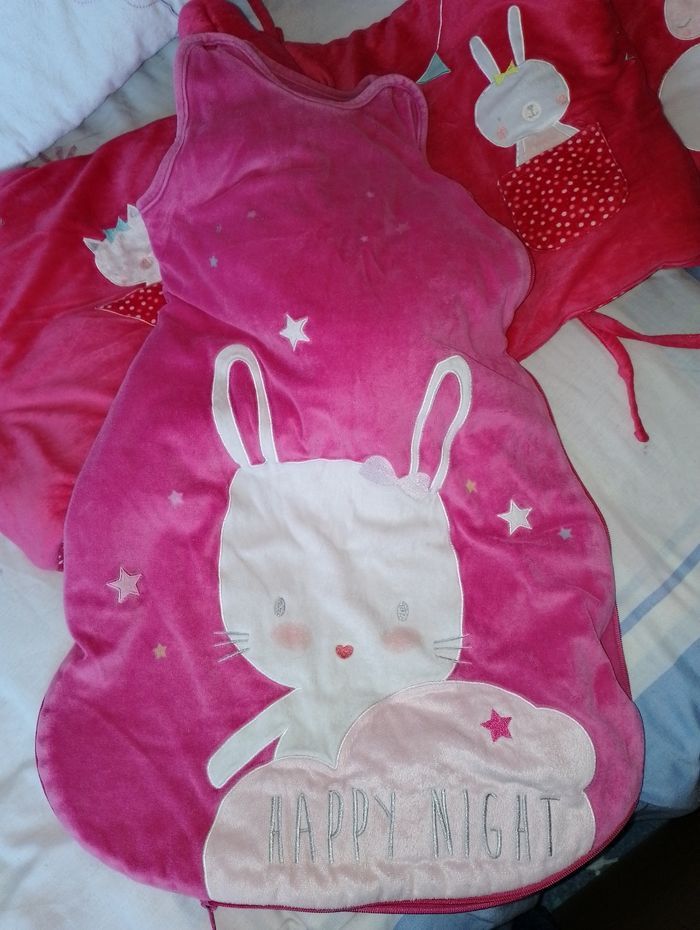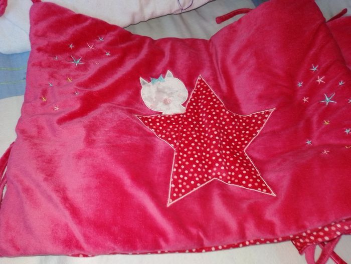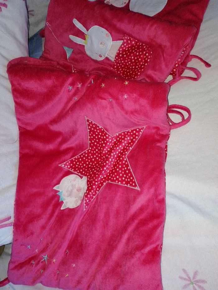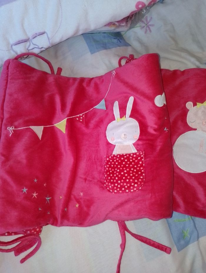 Tour de lit Kiabi rose rouge 20€ Également dispo à la vente la gigoteuse rose 6-24 mois à 16€.