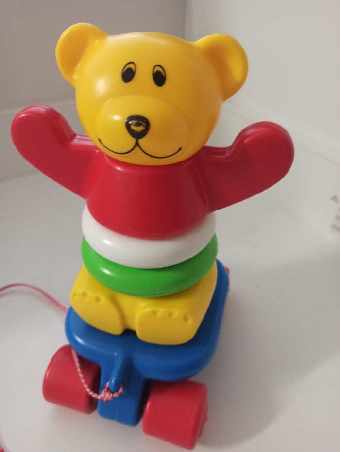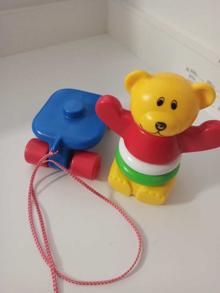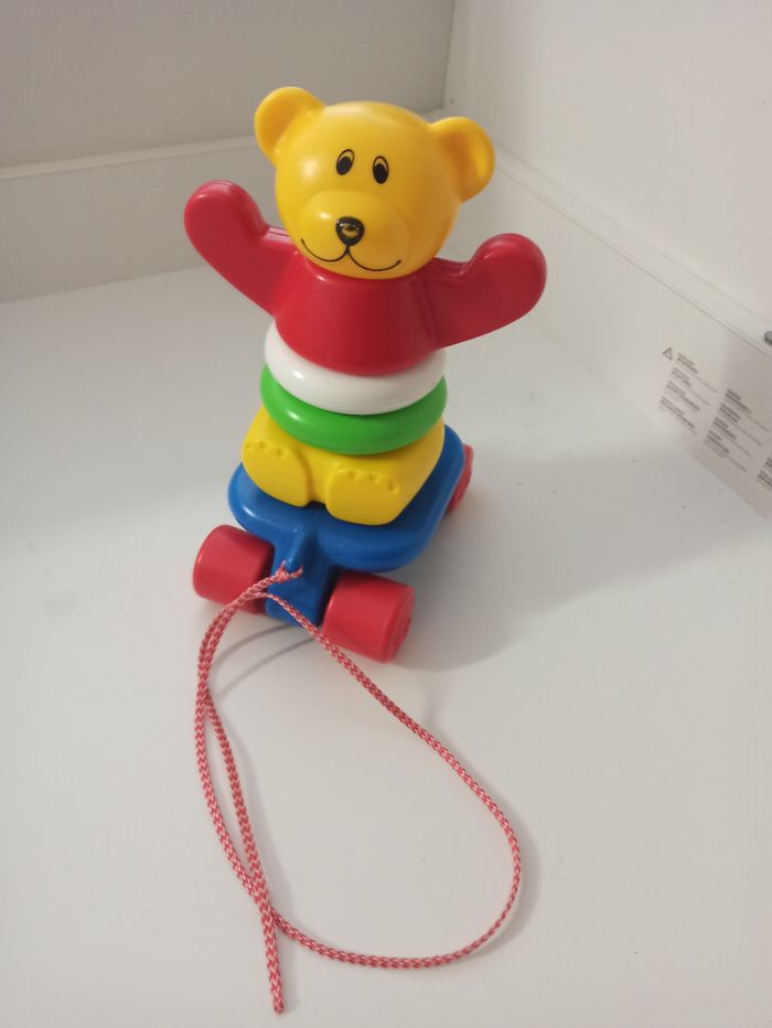 Un Ourson offrant plusieurs possibilités de jeux : tirer mais aussi construire. Tout un monde pour le jeune enfant.
