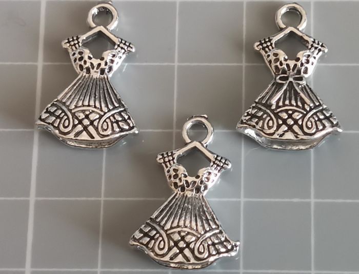 3 x pendentifs 3D "robe sur cintre" en métal argenté