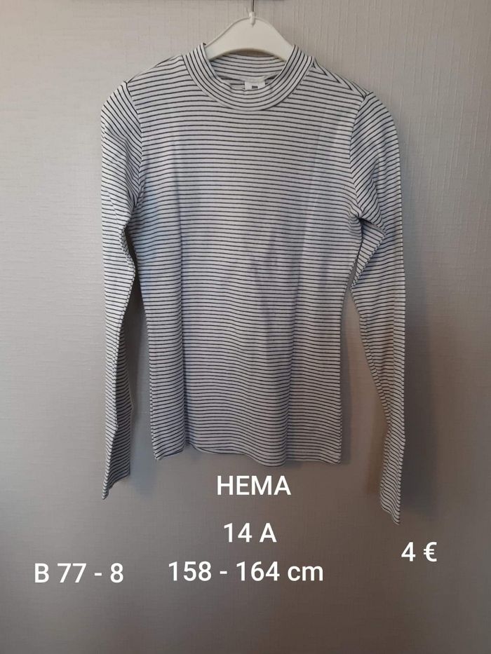 T shirt longues manches rayé blanc et marine de chez HEMA Très bon état