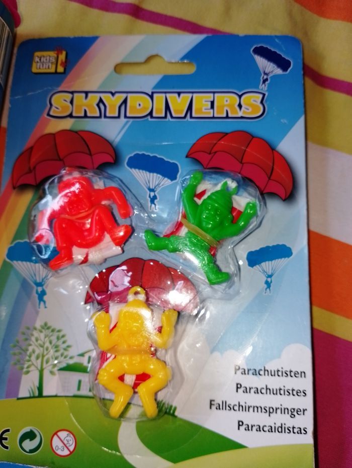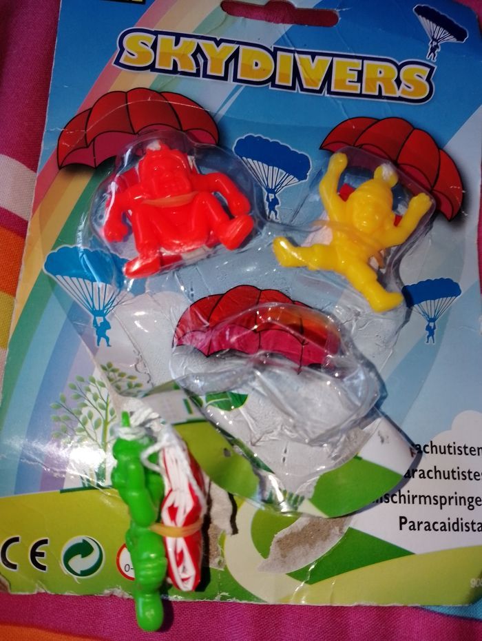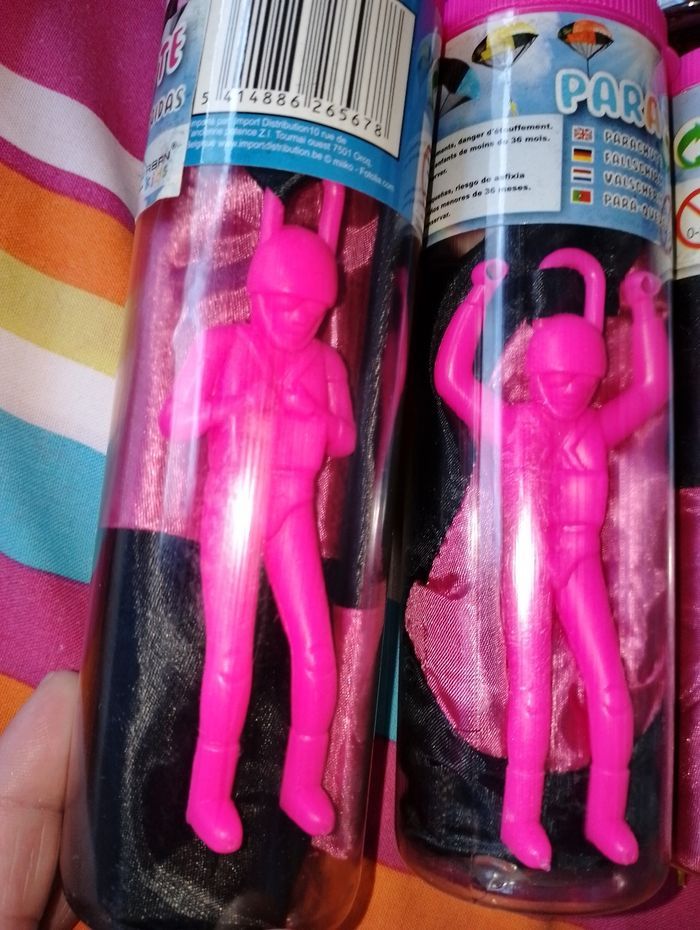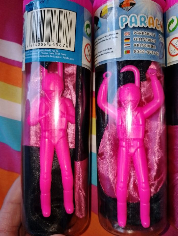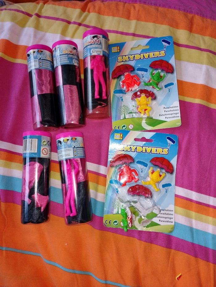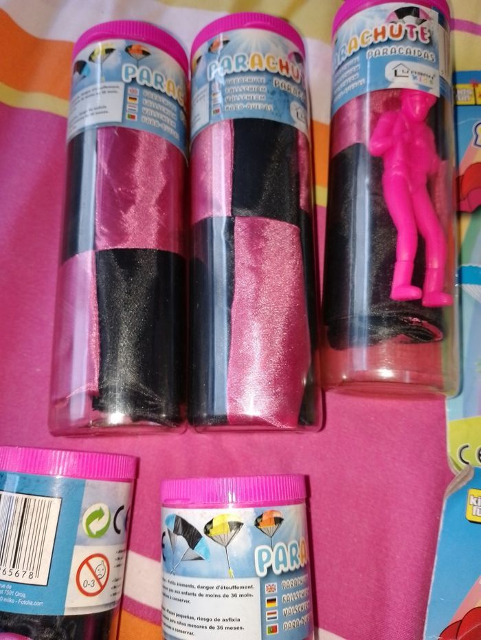 3 petits parachutistes neuf 1orange 1jaune 1vert 10€ le lot de 3 5 Parachutes rose neuf 8€ pièce