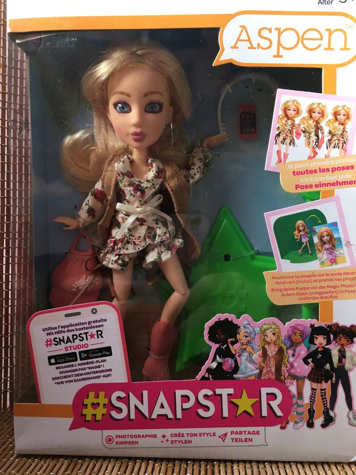 Entrez dans le monde de SNAPSTAR ! Un monde immersif de mode, de beauté, de musique, de déco et de photographie où 6 amies deviennent influenceuses et définissent les tendances de demain ! À l’aide d’un fond vert et grâce à l’application gratuite il est possible de prendre des photos et de personnaliser le maquillage, les cheveux… de chacune des influenceuses ! Les poupées sont très articulées et peuvent être positionnées sur leur socle pour pouvoir les prendre en photo comme on le souhaite ! Partagez facilement ces photos sur tous les reseaux sociaux ! Hauteur : 23 cm.