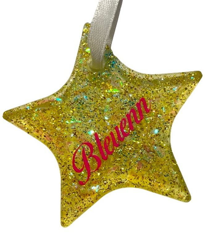 Bonjour Je vous propose une suspension étoile réalisée en résine À personnaliser avec un prénom Couleur au choix Envoie rapide et soigné