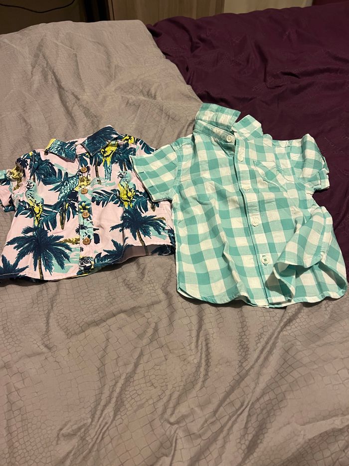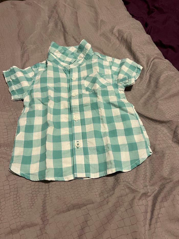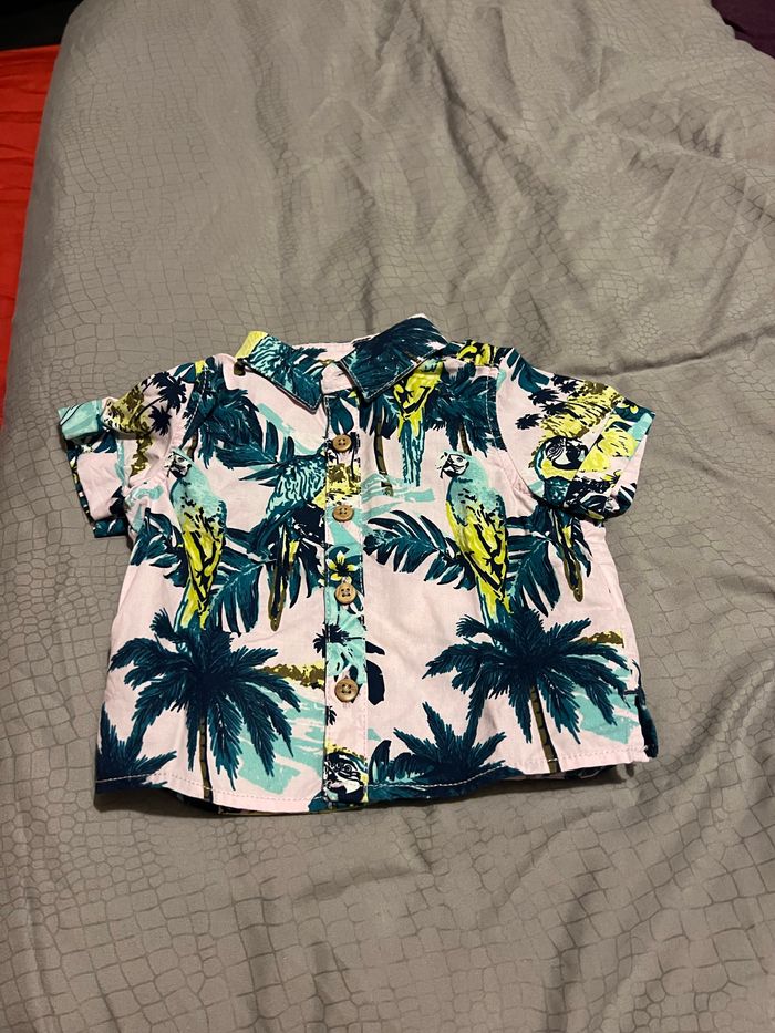 Lot de 5 t shirt manche courte . Certains jamais portés. Chemise style hawaïenne 0-3 mois primark et chemise orchestra blanche et verte en 6 mois