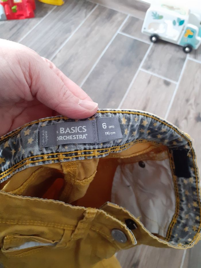 Pantalon jeans taille 6 ans , en très bon état, tres légère décoloration aux genoux avec un l'élastique de réglage à la taille.