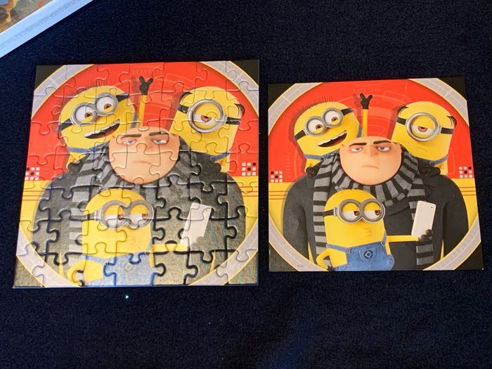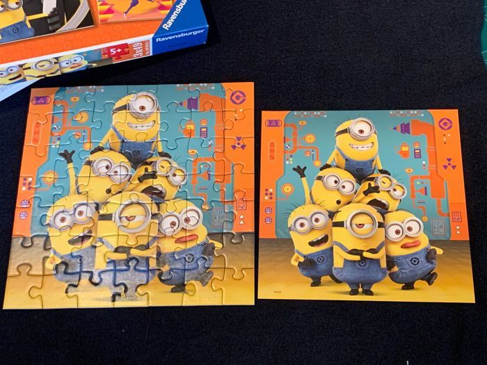 3 puzzles complets avec un mini affiche de guide Utilisé peu mais avec 2 figures déchirées regardez les photos 49 pièces chaqu'un 5+ans #puzzle #minions #3en1