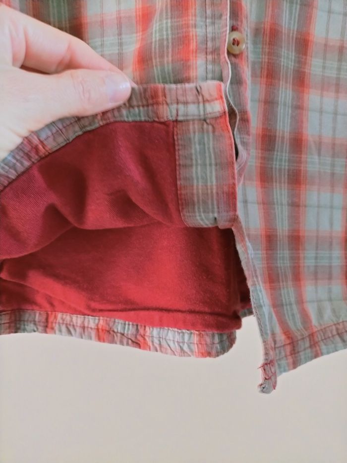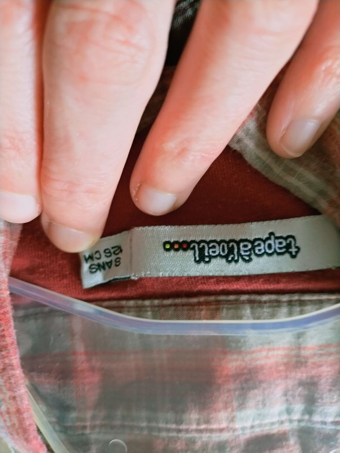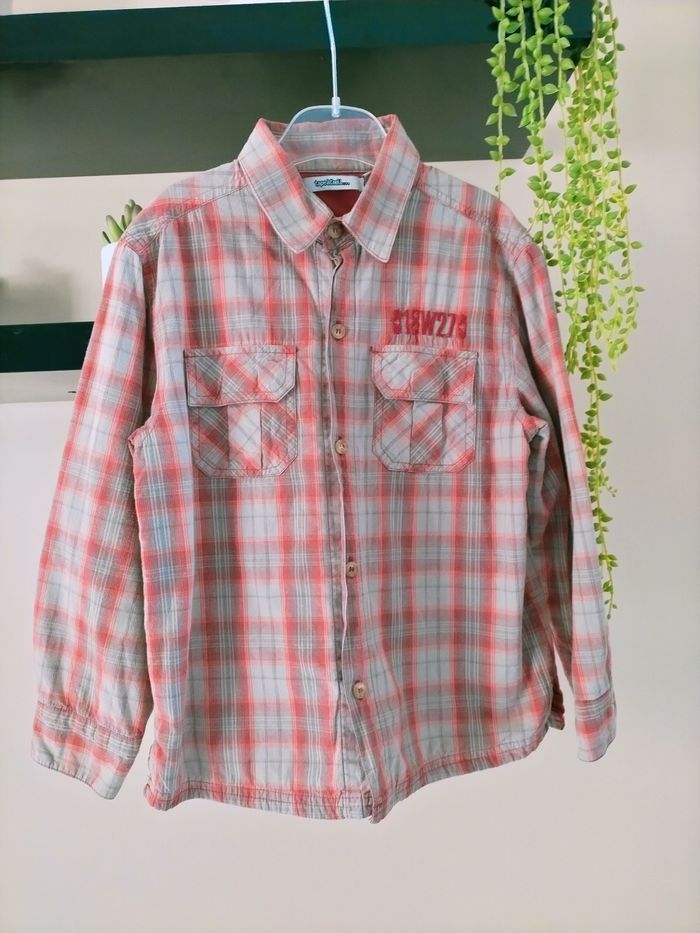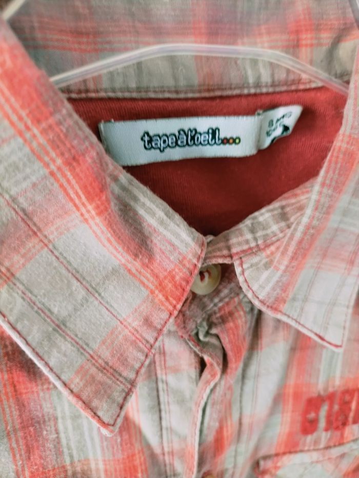 Chemise rayée à carreaux. Marque : Tape à l'oeil.💐💐 Doublée ☀️☀️👍👍👍 Coloris : rouge/gris/ orange. Manches longues. Col. Boutons. 2 poches devant avec scratch. Inscription devant. Derrière protections coudes. Très bon état ( bouloches). Envoi soigné de préférence via Shop 2 Shop 🌺🌺🌺🌺. Voir mes autres annonces d'autres vêtements pour garçon en 8 ans.