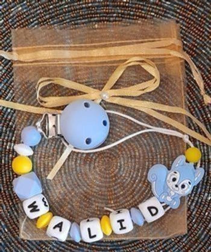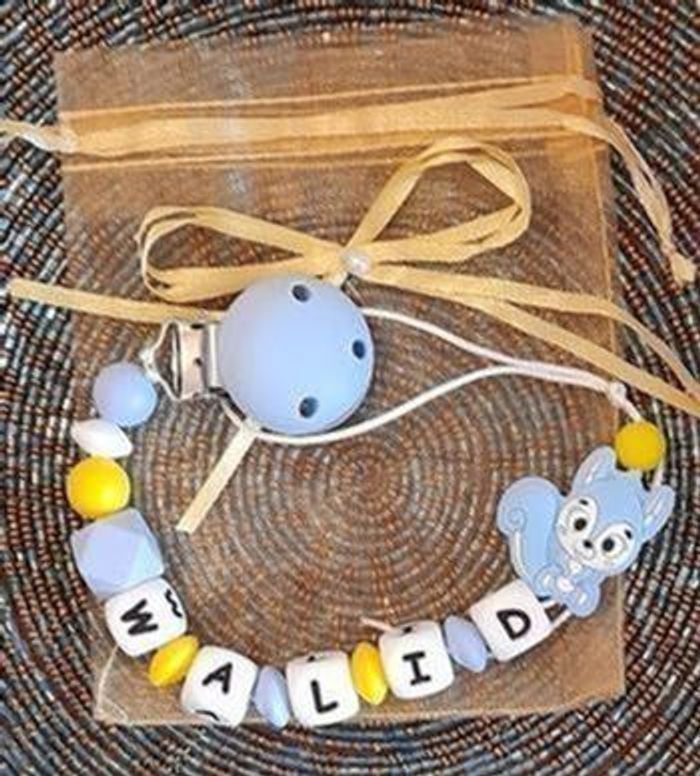 Attache tétine personnalisé avec le prénom de votre choir et pochette cadeau. Réalisation et envoie sous 48h salon le stock disponible. Tout le matériel utilisé est aux normes européennes . Perles en silicone ou en bois ou un mélange selon les modèles . En respectant les normes de sécurité pour bébé ,n'hésitez pas à regarder dans mon dressing il y a plusieurs modèles et aussi à m'envoyer un message pour plus d'informations. 🔴 une petite remarque pour les prénoms qui sont très long il y aura forcément moins de perles sur les cotés ou quelques changements sur le modèle c'est pour respecter les normes de sécurité pour bébé il y a une langueur à respecter merci pour votre compréhension. 🔴Aussi l'utilisation de l'attache d.oit être sous surveillance et toujours vérifier si l attache tétine est intacte et les nœuds sont toujours bien fermés pour la sécurité de nos boutchous. Je vous remercie pour la lecture de ces consignes.