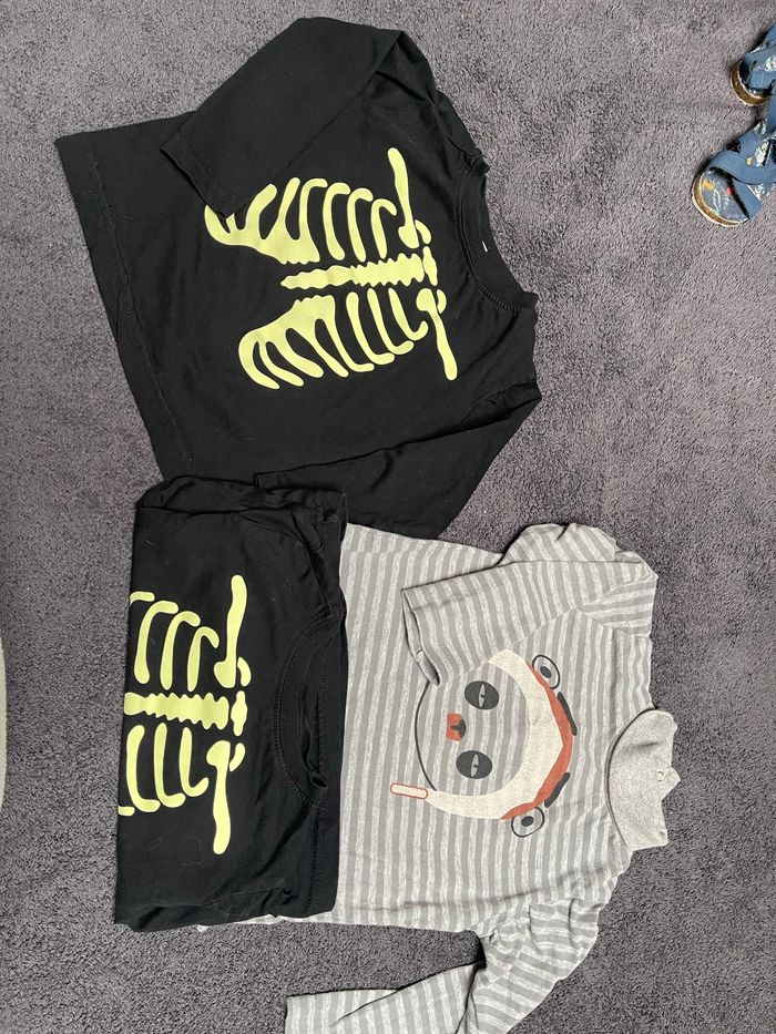 Les noirs sont phosphorescent dans le noir Le gris a été bien porté et usure du dessin 1,5€ les trois 92cm