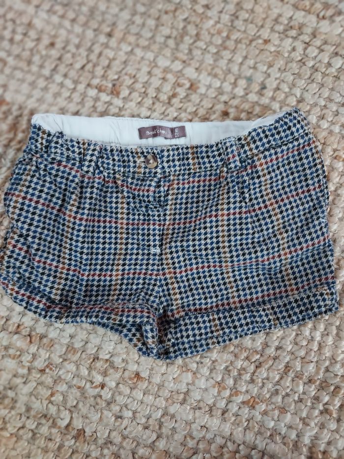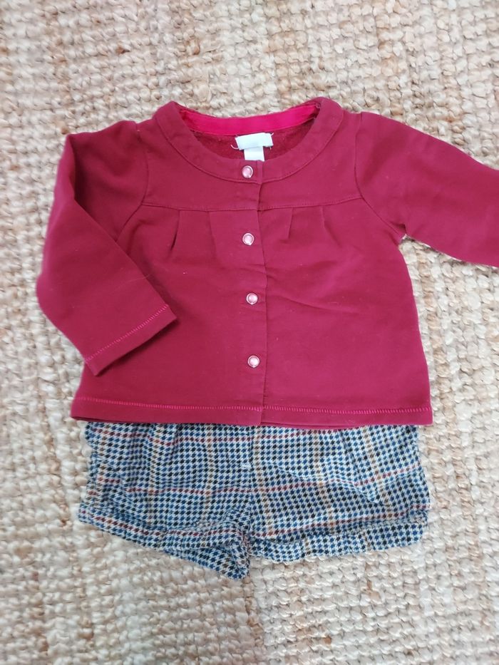 ensemble d'hiver, short en velours à carreaux bout'chou avec veste en coton bordeaux okaidi. taille 12 mois