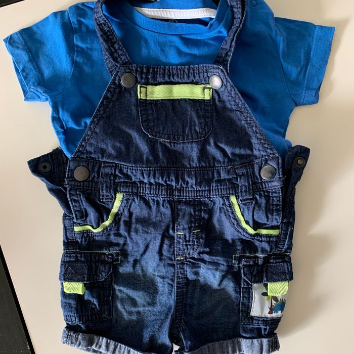 Lot Ensemble Salopette & 2 t-shirt 9 mois Bleu & Rouge - photo numéro 1