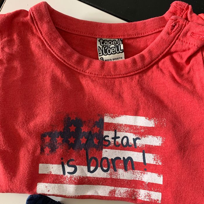 Lot Ensemble Salopette & 2 t-shirt 9 mois Bleu & Rouge - photo numéro 7