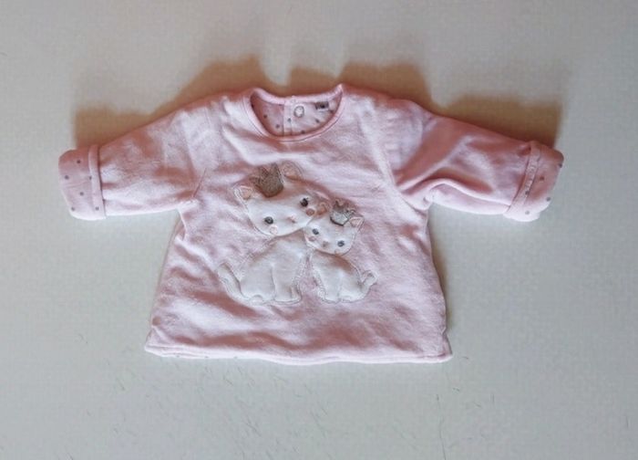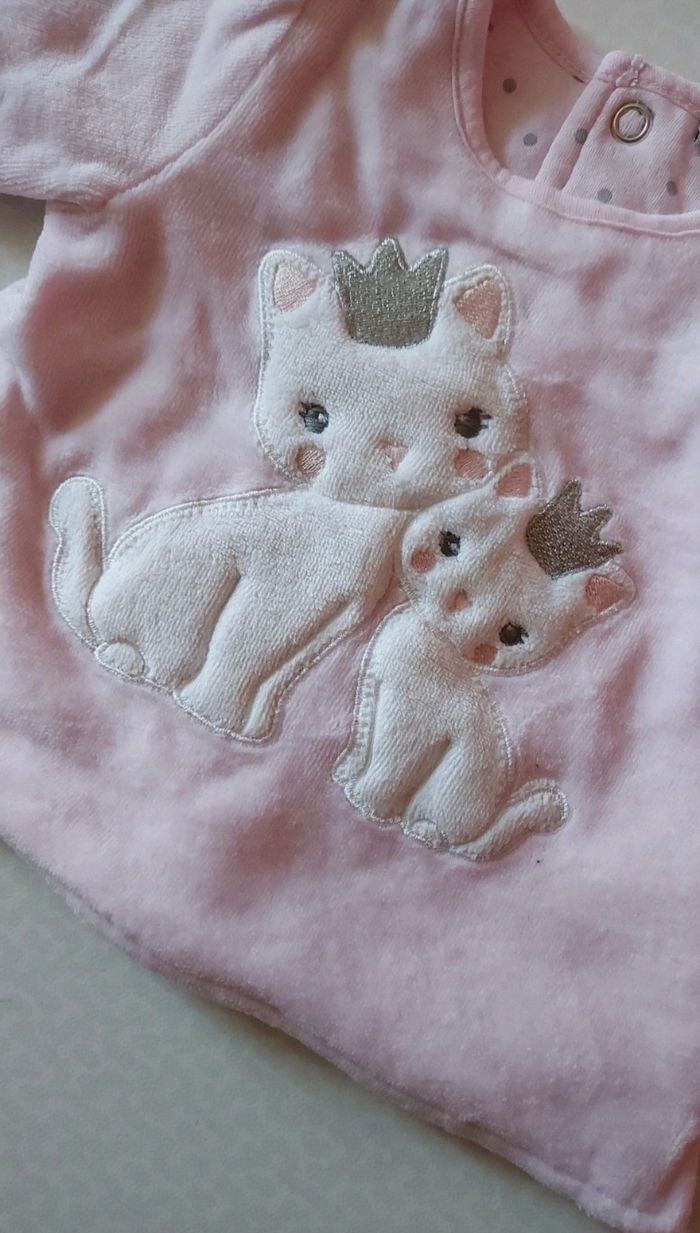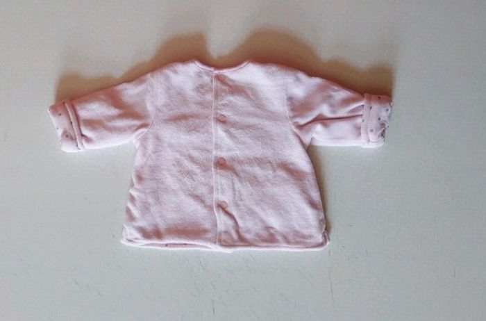 Je vends un haut nouveau né pour petite fille - taille 1 mois. Dessin sur le devant- manches retroussées et fermeture avec des boutons à pression par le derrière. Jamais mis (l'antivol est encore présent en étiquette).