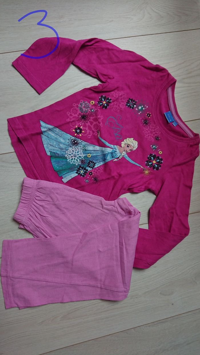 Combinaison été TeX 1,50 €, un pyjama mi saison nickel Armor Lux 3 €, un pyjama reine des neiges Disney 2,50 €. Bon état général. Peuvent se vendre ensemble ou à l'unité comme vous voulez. Le tout est à 7 euros.