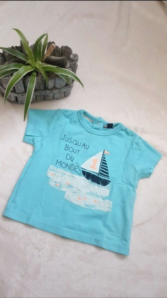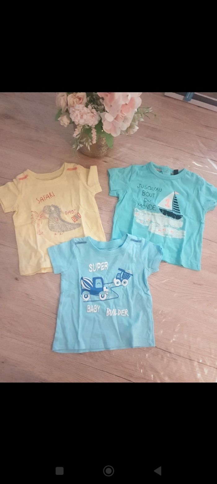 Lot de 3 t- shirts manches courtes taille 9 mois dinosaures, chantier et bateau