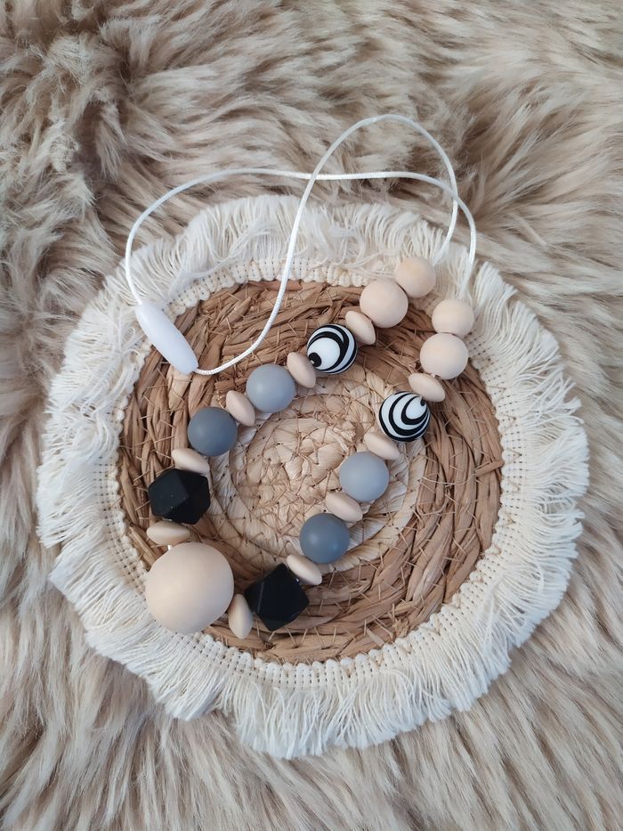 Collier d'allaitement et de portage Longueur environ 75cm En bois naturel et silicone alimentaire Sans BPA ni autres substances toxiques Possibilité de modifier les coloris