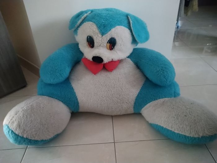 Énorme peluche bleu La mousse est un peu déformé mais il reste très beau En bon état À venir chercher sur place car trop volumineux pour un envois