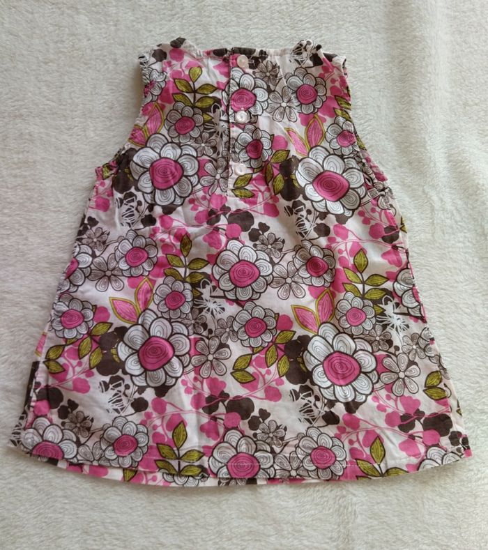 Haut Tunique été motif floral ( pas de marque), Taille 18 mois. Très jolie porté avec un legging. La tunique s'attache avec trois boutons derrière.