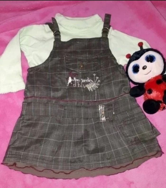 Très jolie robe et haut vert pomme Fermeture au dos Excellent etat peu portée Taille 6 mois