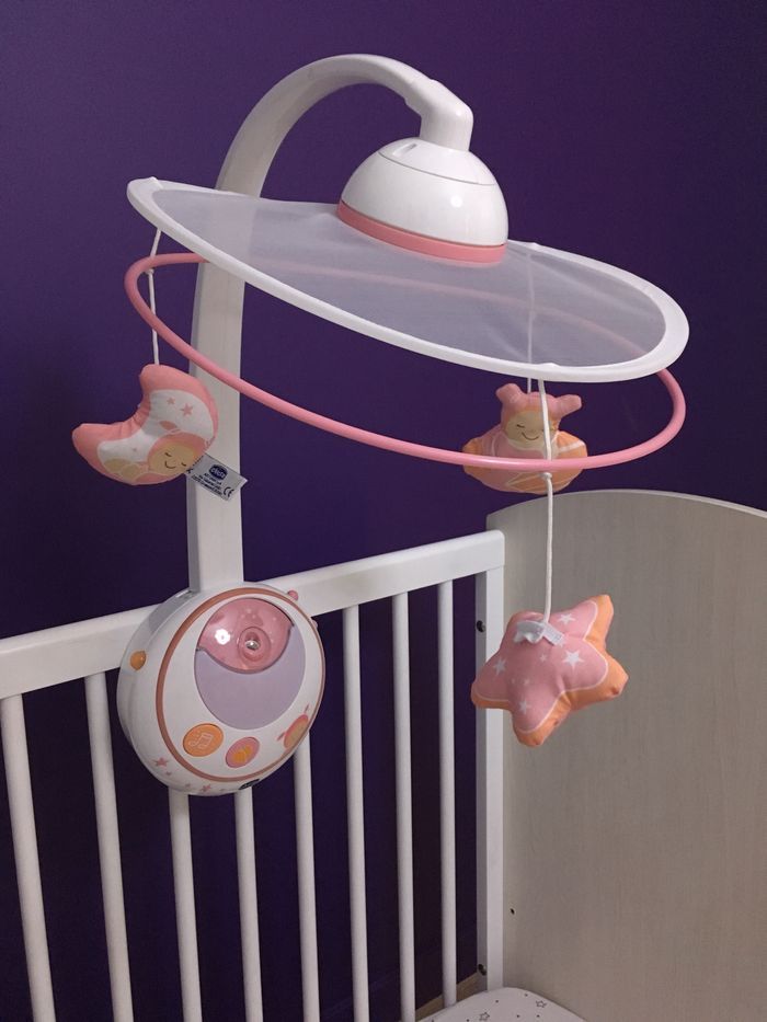 Je vends ce mobile double projection chicco en très bon état, très peu servi. Sons et lumières. Télécommande fournie.