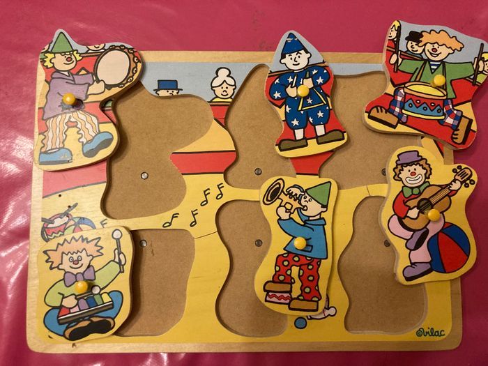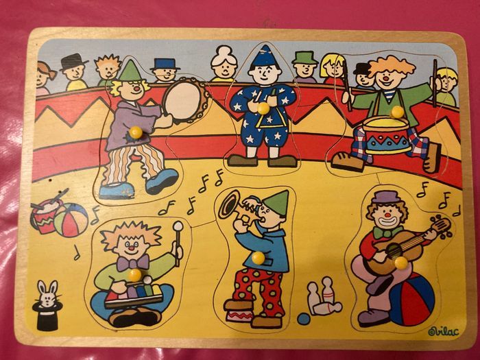 Joli puzzle à encastrement sonore thème les clowns Les piles seront à remettre En très bon état néanmoins il a été manipulé par des enfants Non négociable Envoi rapide et soigné