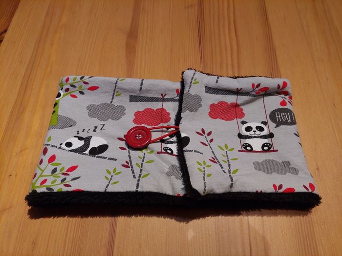 Un snood qui se ferme à l'aide d'un bouton. Très pratique pour ne pas devoir le passer par la tête de l'enfant.