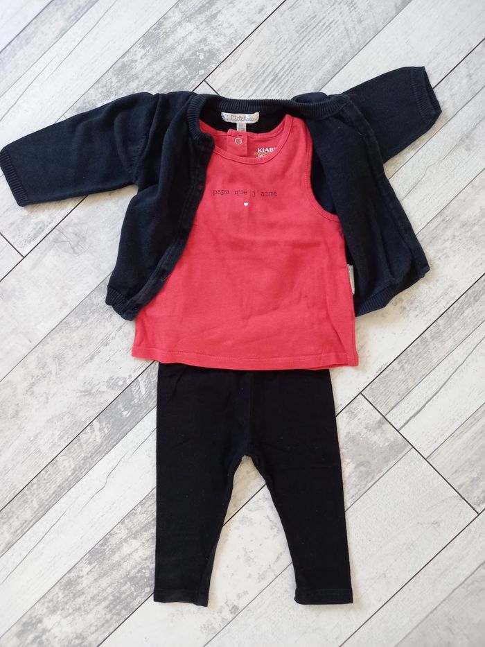 Ensemble 3 pièces, leggings, tee-shirt et gilet. En bon état