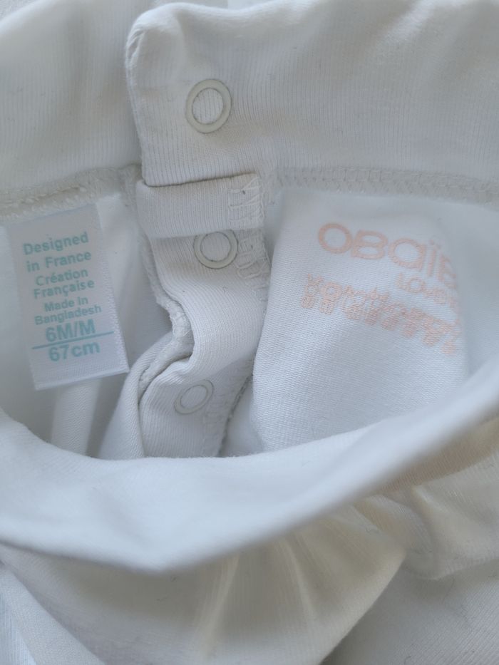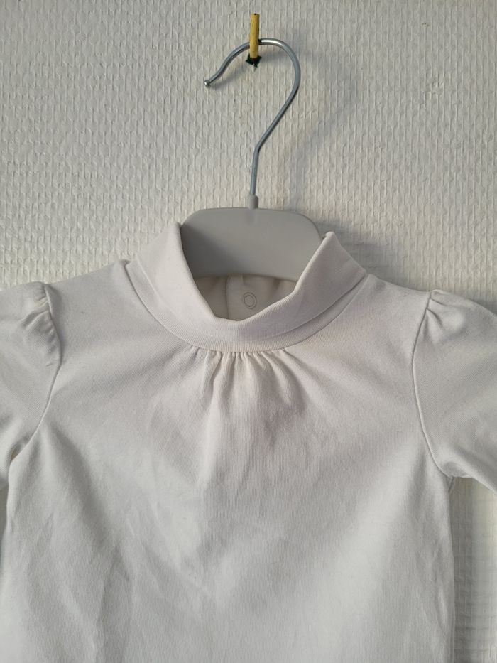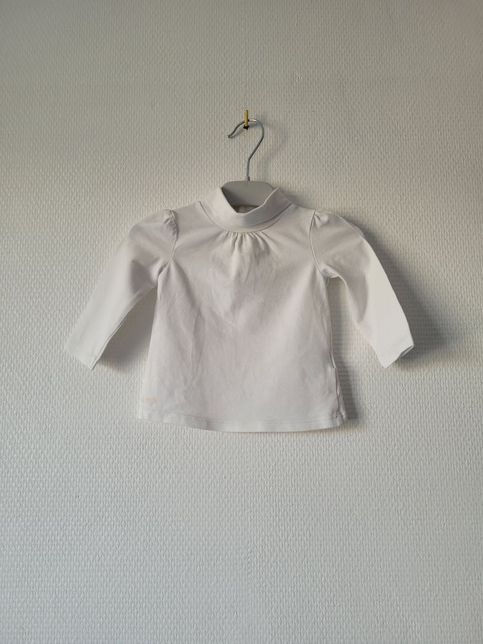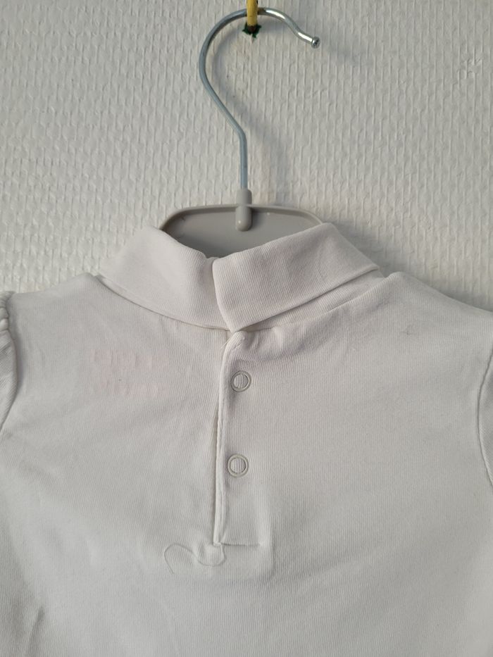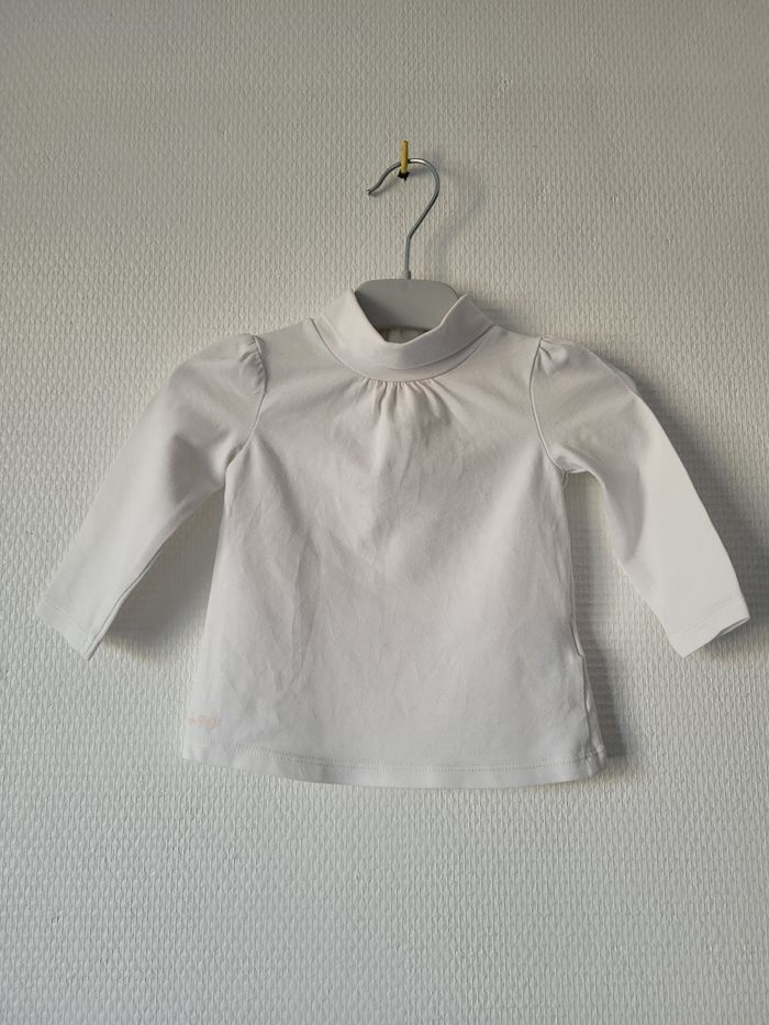 Sous-pull blanc de marque Obaïbi taille 6 mois Col roulé Petites fronces sous le col ainsi que sur le haut des manches 95% coton/5% elasthanne En très bon état